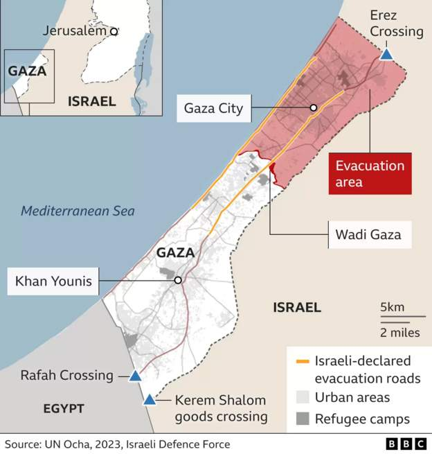 The Palestinian health ministry said that 70 people were killed on the road, which was filled with traffic as Palestinians tried to adhere to Israeli orders given early on Friday to evacuate the northern half of Gaza.