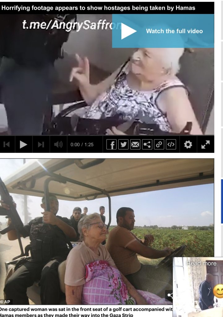 Esther Borochov told Reuters she was driving away when her vehicle was rammed into. She saw a young man driving another car, who told her to get in. She did - but the man was then shot at point blank. Esther said she played dead until she was finally rescued by Israeli military.