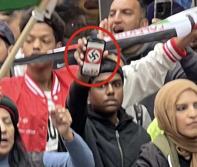Unfortunately, in today’s anti-Israel side, there was this guy brandishing a swastika.