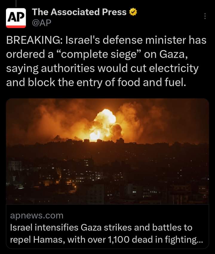 *No water, gas or electricity in Gaza. Israel has seized total control of Israel.