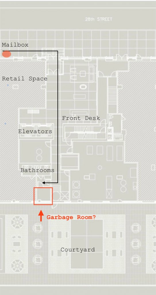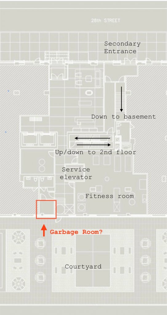 Great find. I am super curious what the garbage room is like in such a high-end building - is there some kind of new, state-of-the-art trash chute that is disguised to blend in with the environment? I feel so bad for poor Jaclyn.