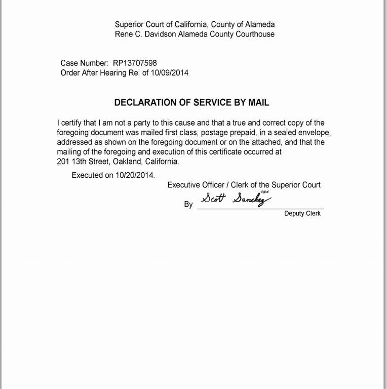 Page 2 just seems to be a certification page by the court clerk, that the documents were mailed from 201 13th St Oakland (a post office) on 10/20/2014. Not sure exactly what this means, other than I assume it's just the clerks certification that they're mailing out the documents to all interested parties on Monday, 20th October, 2014. (Ooops! Did I find these documents before the attorneys got ahold of them? LOL)