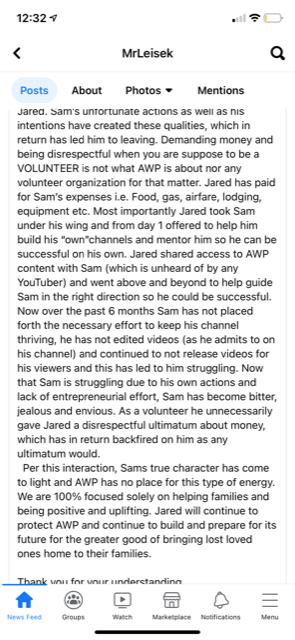 There are many for profit businesses that ask for donations. WS is one of many I can think of off hand. I'm not going to throw the baby out with the bathwater on this. I trust the authorities will see that justice is done and that the rest of AWP can get on with helping find the missing. JMO