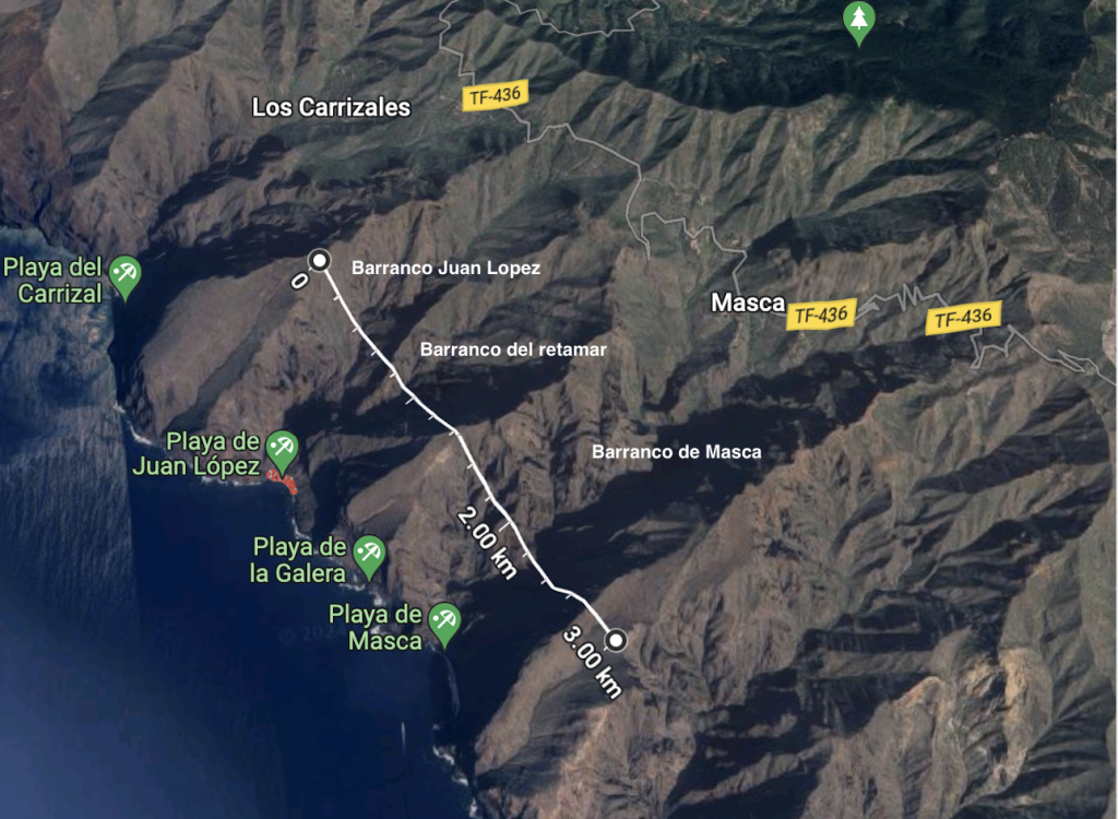 I assume it is these three ravines, a 3 kilometre stretch as the crow flies but extremely challenging terrain on foot and arguably one of the most dangerous places to go missing on the entire island. Yet paradoxically the only location nearby where there is a trickle of water and shade.