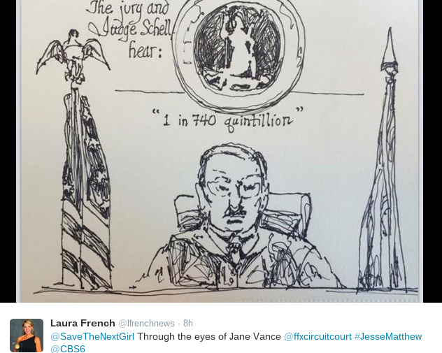 David Culver, NBC Washington, reports here, and his colleagues M. Alex Johnson writes and Brent Solomon, NBC 12, reports about court today, with a great quote from Gil Harrington about the brave woman from India.
