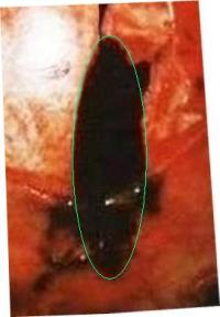 That last sketch was made from the autopsy photo here showing the actual shape, which is elliptical -- not rectanglar: