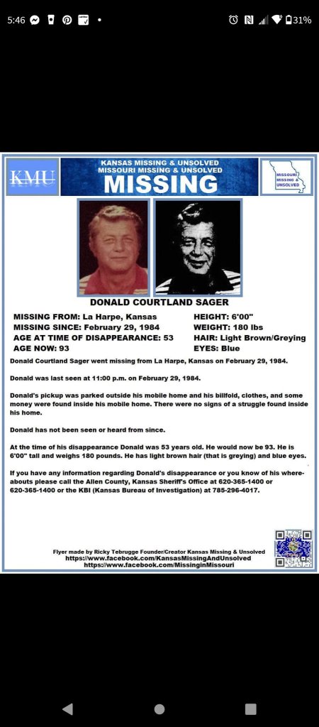 Circumstances of Disappearance Don was last seen about 11 p.m. on February 29, 1984.