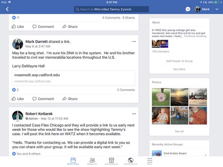 Mark You very well know they are looking at other people, not just semi truck drivers that may have killed Tammy Zywicki. I've attached a pic where you posted on Tammy's site about this. I'm sure you didn't mean to be misleading about this .