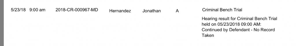 JH requested a continuance -it happens a lot on both sides asking. Sedgwick County has a LOT of high profile cases being heard this week alone at some stage in the process.