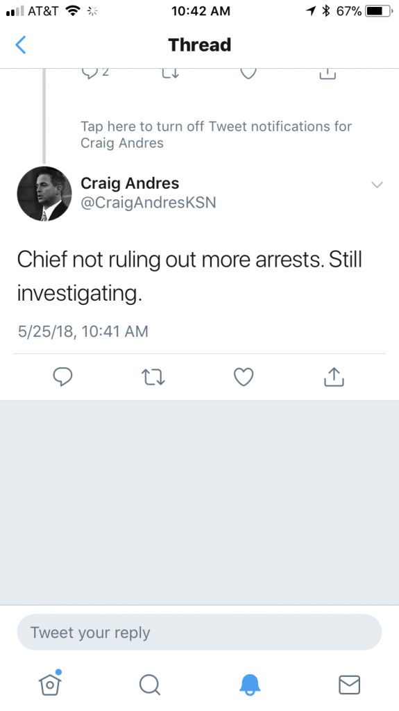 Not sure if there will be additional arrests yet