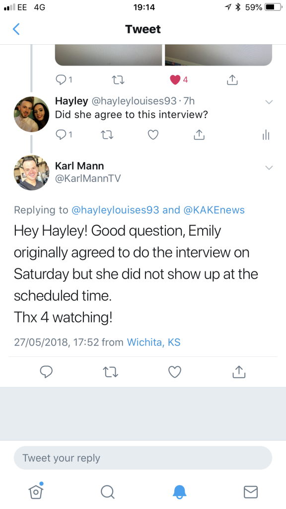 I went to twitter and someone asked if she agreed to the interview and he said yes.