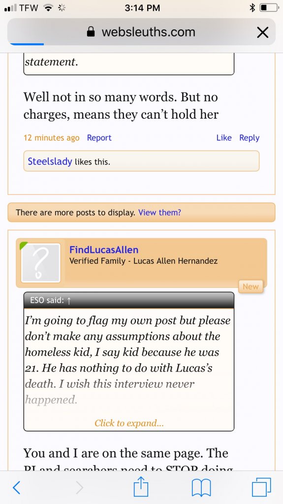 That’s why I want to reiterate for new members, those whose first case is Lucas’, we really really really need to be grateful that Lucas was found (not that anyone isn’t, ykwim), especially after EG’s suicide, because this sooooooo could have gone the other way, and often does....sooo many families who never have answers...