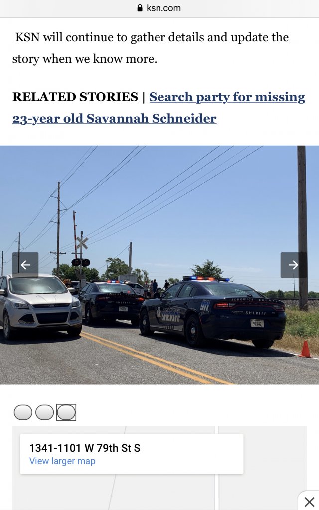 Captain Brad Hoch of the Sedgwick County Sheriffs Office, says ‘the search team that was out looking for Ms. Schneider in the area of 79 Street South along the railroad tracks between Seneca and Meridian area. During their search it was indicated to us that they did find a body in a field near the tracks.’