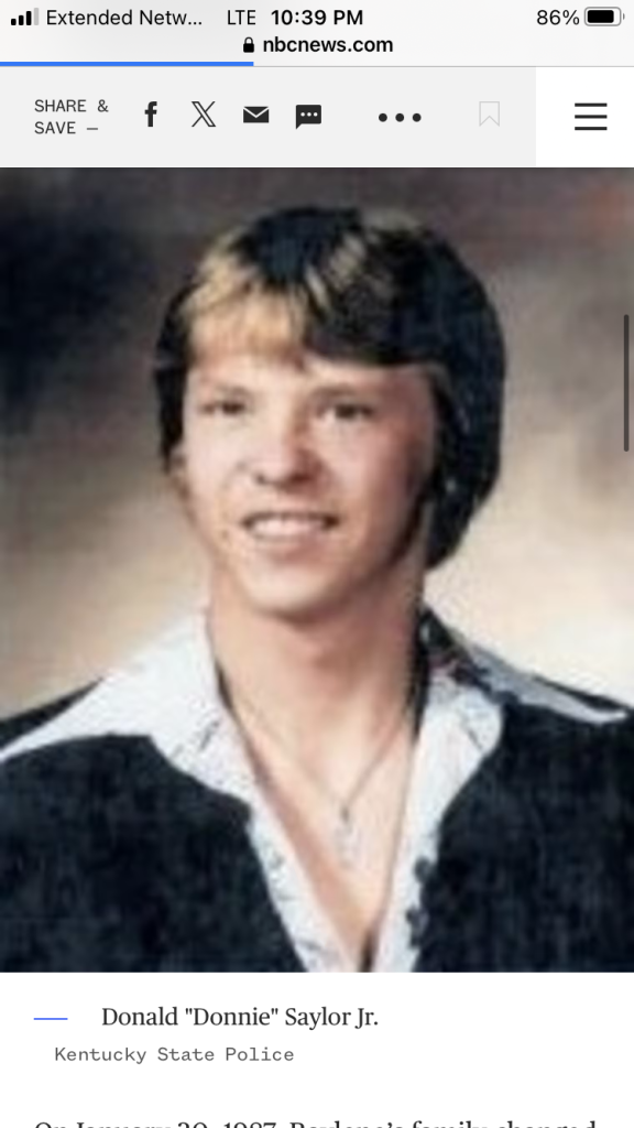 Donnie Saylor Jr. was found dead by an Eastern Kentucky University security officer on February 2, 1987 in a field off Muddy Creek Rd. He had been shot in the chest and head. The weapon was never found and this remains a cold case. Mother, sister demand justice for Donald ‘Donnie’ Saylor Jr. who was found shot to death in Kentucky wildlife reserve in 1987