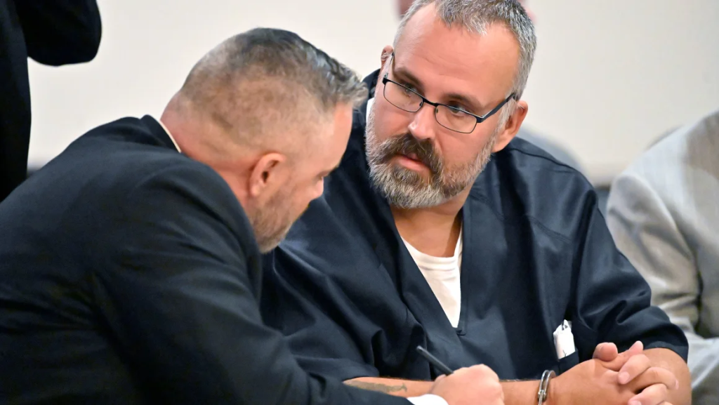 Shawn “Mickey” Stines, 43, who officially resigned Monday as sheriff of Letcher County, appeared in court in a jail uniform and handcuffs as prosecutors presented their evidence in the murder of District Judge Kevin Mullins.