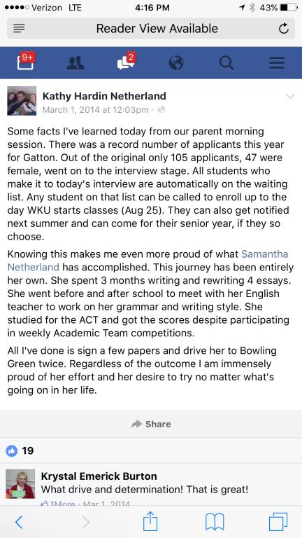 I cant help but think this was an act of anger/jealousy against Kathy and a Samantha over her recent acceptance into the academy. Based on one of Kathy's Facebook posts, it sounds like it's very difficult to get into and she was not shy about boasting of samantha's accomplishments on FB. Could it have been another student/students parent who was trying to get into the same academy and acted out of jealous rage? Maybe wanting to open an extra spot into the academy? I know theories can sound wild sometimes, but at first glance and first impression, that's what I lean towards.