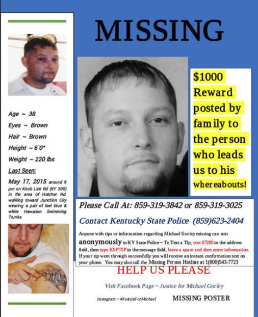 Michael Gorley went missing three years ago, he was last seen May 17th, 2015. He was last seen off Knob Lick Road in Lincoln County.
