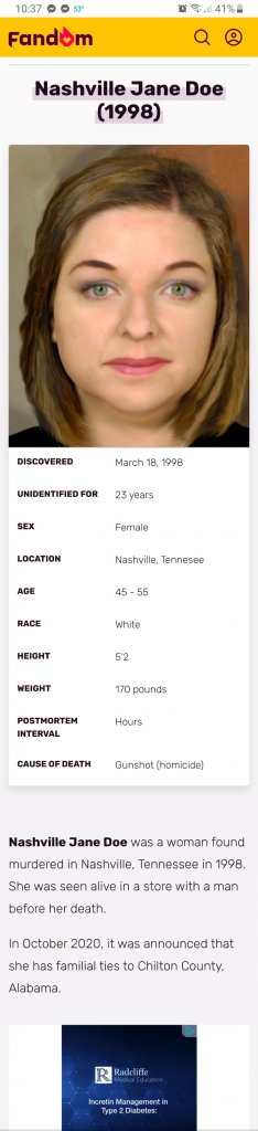^Here is an article on Erica Fraysure that mentions Regina Cox. It states LE has been following up on the possibility that Erica's disappearance as well as Regina's are related to missing girl Lydia Perkins, and other disappearances and homicides in Southern Ohio.