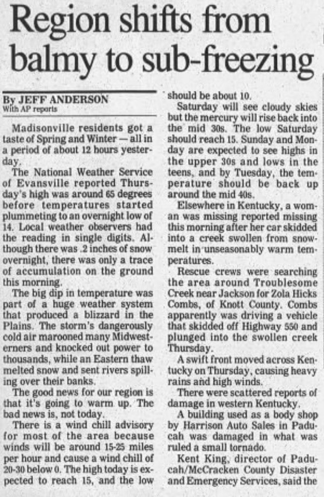 Circumstances of Disappearance: victim was the operator of a vehicle that wrecked into a creek.