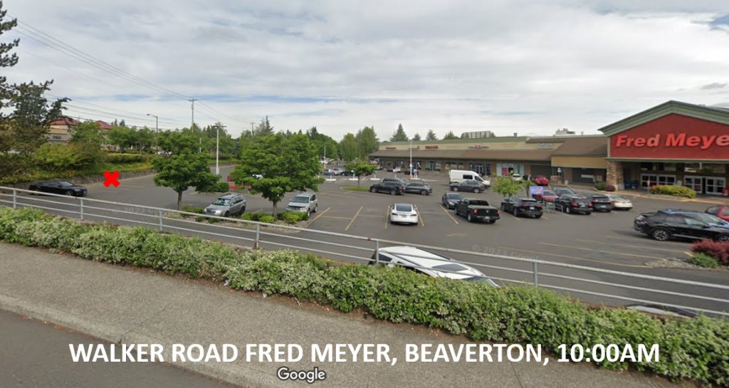 The first part: Fred Meyer, Hillsboro at "approximately 9 AM;" and Fred Meyer, Beaverton at "approximately 10 AM."