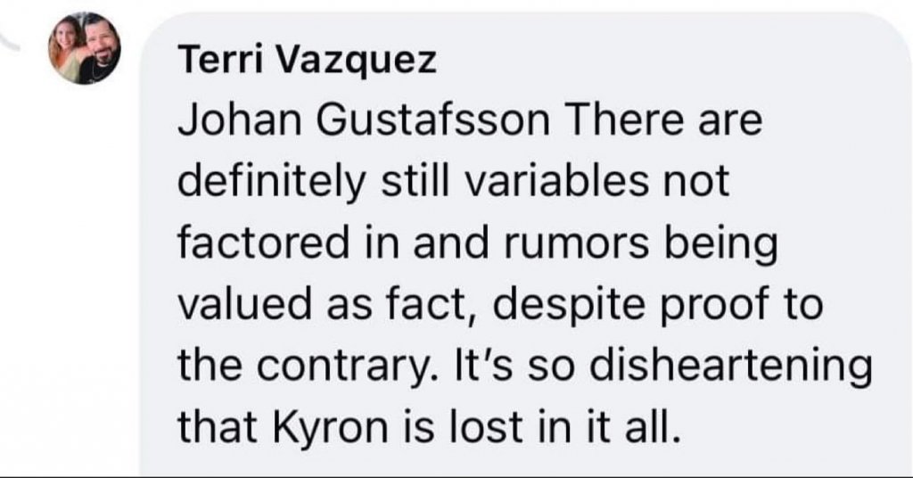 Terri Moulton Horman-Vazquez has recently been posting photos of Kyron and commenting about him on her Facebook page. Desiree Young responded to one of her comments.