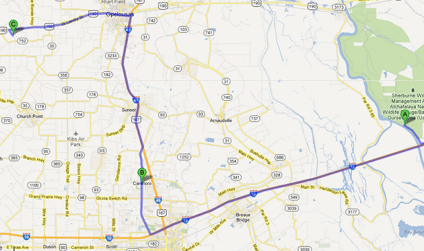 also, 190, which is right by his house runs all the way to Parish road 3-95. then 3-95 runs all the way to i-10