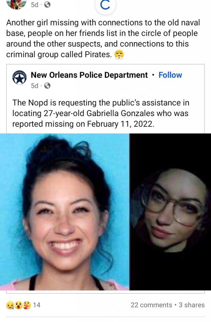 Michael hearty has not made a statement to the media about Becky's missing. Does anyone know any groups that would go petition in front of his mother's house ( like they did in Gabby Petitos case) asking why her son won't speak up or is she hiding him as no one knows where he is living now. Mardi Gras has slowed the investigation. Another woman, Gabrielle Gonzalez, with the same ties has gone missing. I want the Heartys to speak up as they have the money to help Hearty disappear and if he's not guilty, why haven't we heard from them? <modsnip>