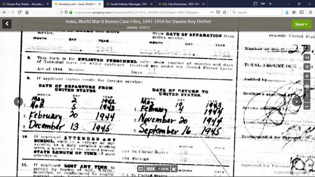 This is an application Dwane made for a World War II Service bonus: Ancestry - Sign In
