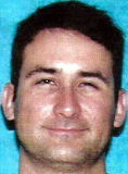 - Distinguishing Marks/Features: Wears eyeglasses. Tattoo of a large cross outlined in black on upper left arm. Tattoo of a black flaming skull on upper right arm. Tattoo of letters including "H", "A", and "E" on upper back.