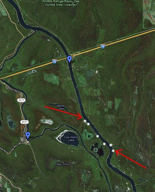 Ok, I just updated the previous map. I'm just looking a little closer to the waters edge where I have mapped, and I can see a number of places that seem to stick out further into the water than others. I think maybe what I will do today, is to mark those places on one map. In a few places it looks like camps down there too where the edge seems to jut out. So many people seem to think that she may be in there, and then also the alligator factor, it just may be impossible to find her.