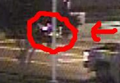 There is what appears to be a large white mass extending a good distance beyond the blue/purple "shirt" that is not in the other pic with Mickey riding by. I still believe it is a white vehicle. Maybe they turned right and made an immediate right into circle k and it is the white car/truck in the second gas station bay in one of the pics? Or an unrelated vehicle that had just passed Mickey and took off for parts unknown.