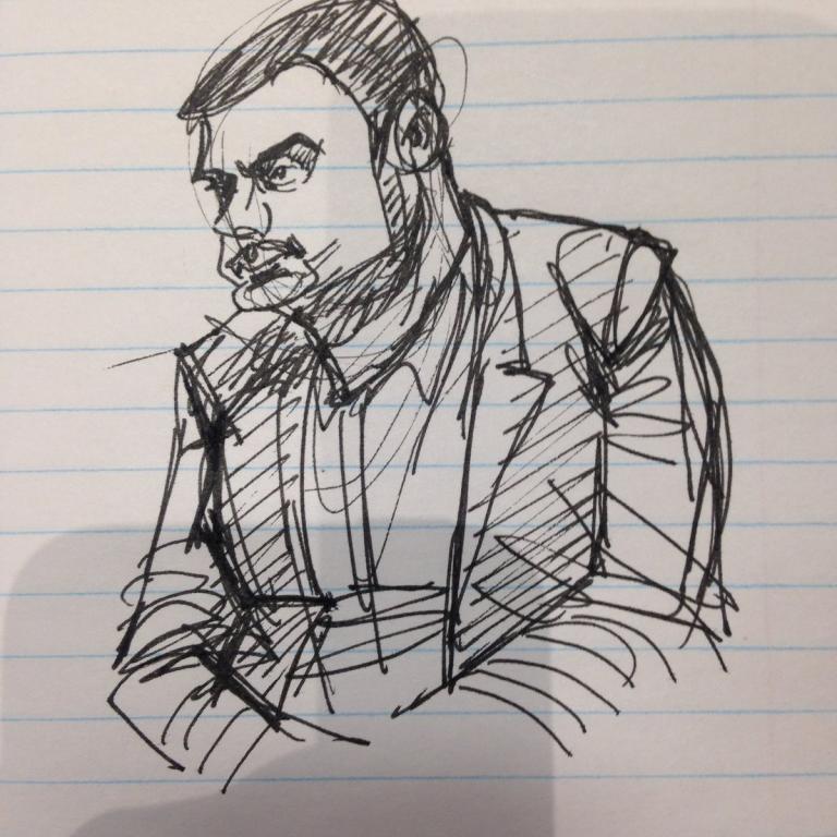 Andrew Michalski, 27yr old plumber (he looks younger than my drawing) Now discussing when Millard met gf at the Brunswick House.