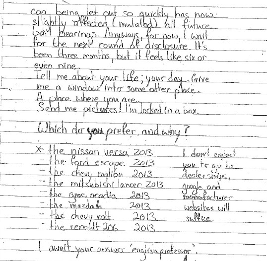 Millard reads what Michalski wrote, "I wanna **** the **** out of her steady all weekend."