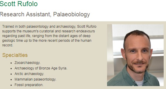 Millard has called Dr Scott Rufolo, as an expert in zoo Archeology. Works at the Canadian Museum of Nature in Ottawa.