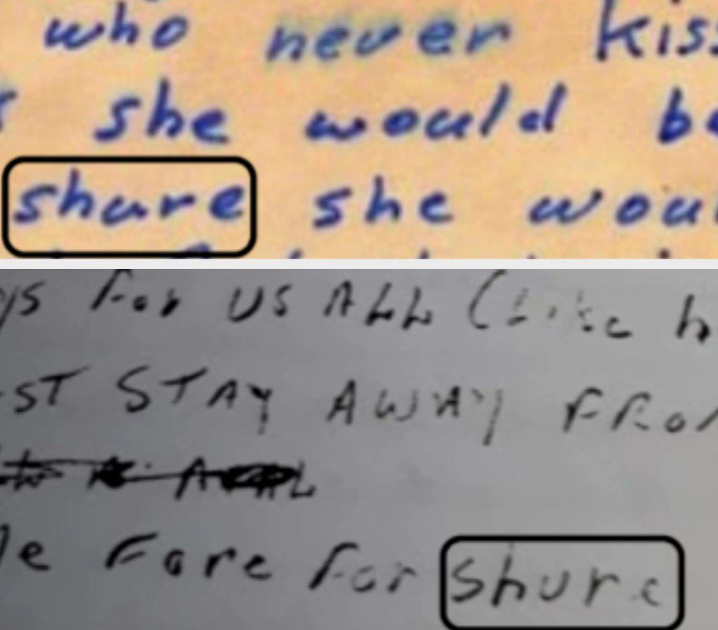 I also noticed with his letter to Dale from jail he misspelled sure with "Shure". That is quite odd.