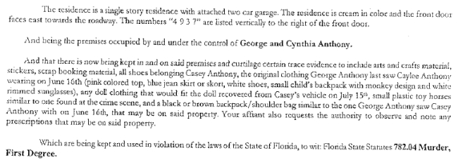 Armed with evidence from the remains site, LE immediately served a search warrant at the Anthony home and followed up with another warrant a week or so later.