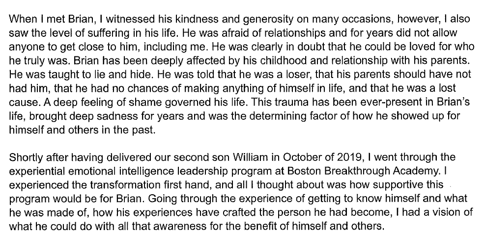 As Brian’s wife, Ana Walshe wrote to the judge back in 2021, “Brian has been deeply affected by his childhood and relationship with his parents. He was taught to lie and hide. He was told that he was a loser, that his parents should not have had him, that he had no chances of making anything of himself in life, and that he was a lost cause.””