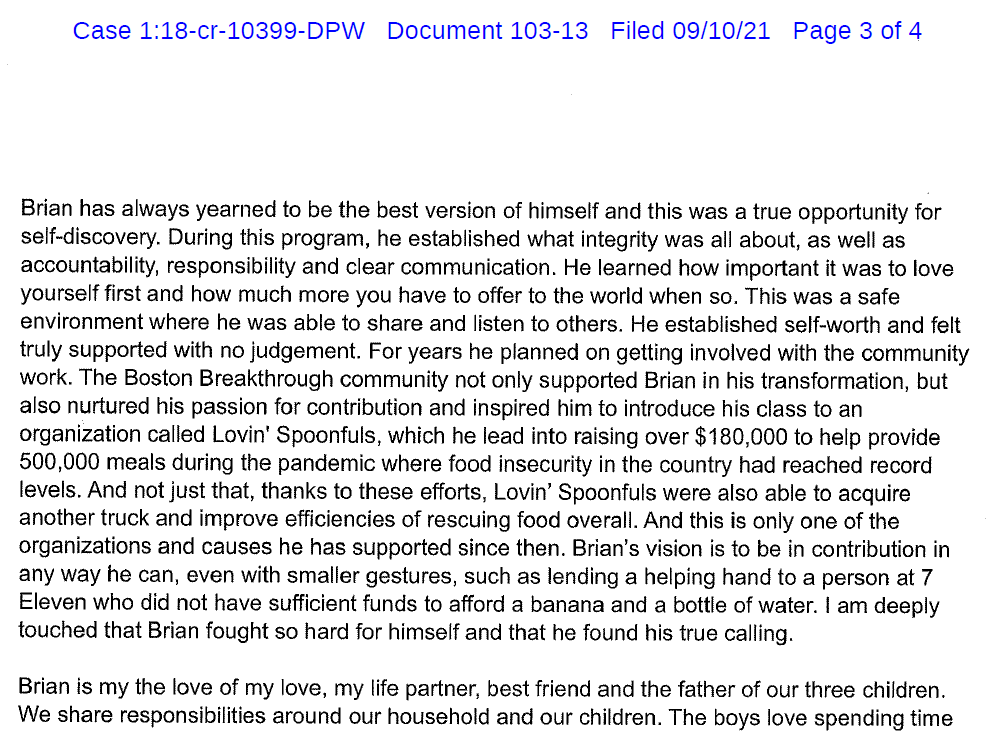The Boston Globe article stated that his father put $500K into a house that Brian owned, and Brian had agreed to refund his father for his investment once the house sold. The house sold, and Brian disappeared with all the money.