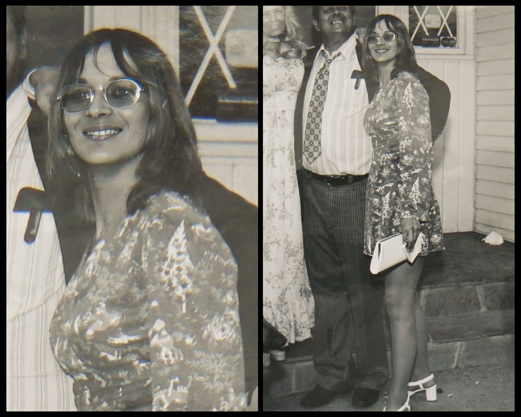 If those are her parents to her right (left in image)….. it appears IMO that the sleeve on the ‘dress’ covered arm over the center gentleman’s left shoulder - that pattern on the cuff sleeve doesn’t seem to match the dress? Worn by the women at far left? Oddly it almost seems to match the pattern on the gentleman’s shirt? And I will concede very unlikely his arm is slung over his should that way.