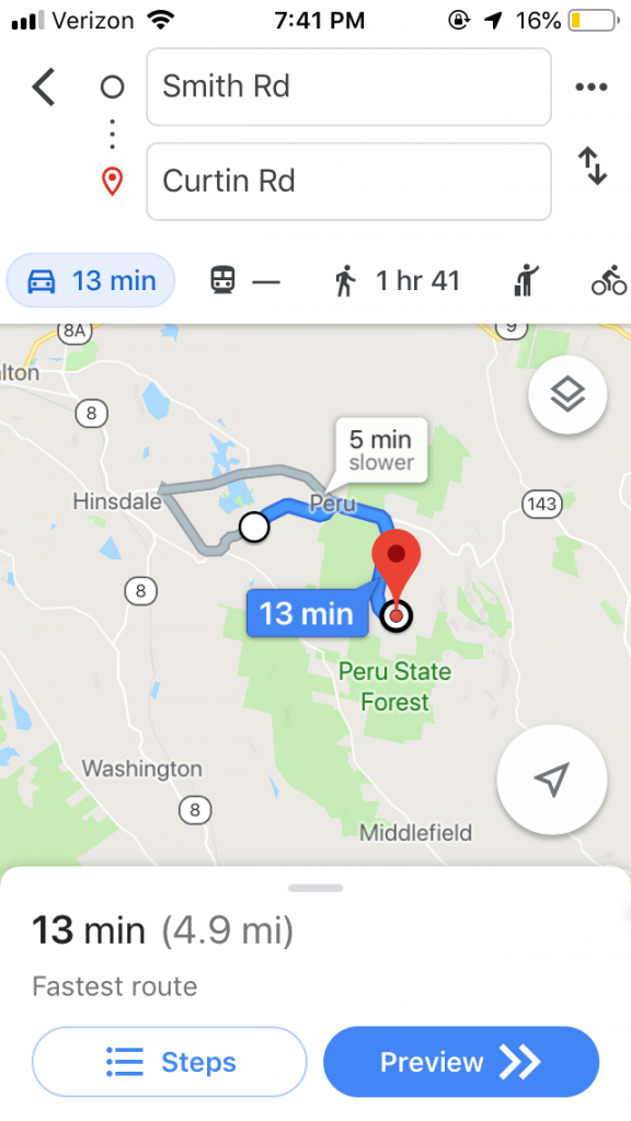 Smith road in Hinsdale to Curtin Road in Peru, MA