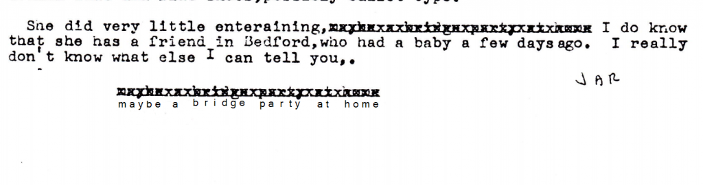 She did very little enteraining [sic], xxxxxxxxxxxxxxxxxxxxxxxxxxxx I do know that she has a friend in Bedford, who had a baby a few days ago. I really don't know what else I can tell you,.
