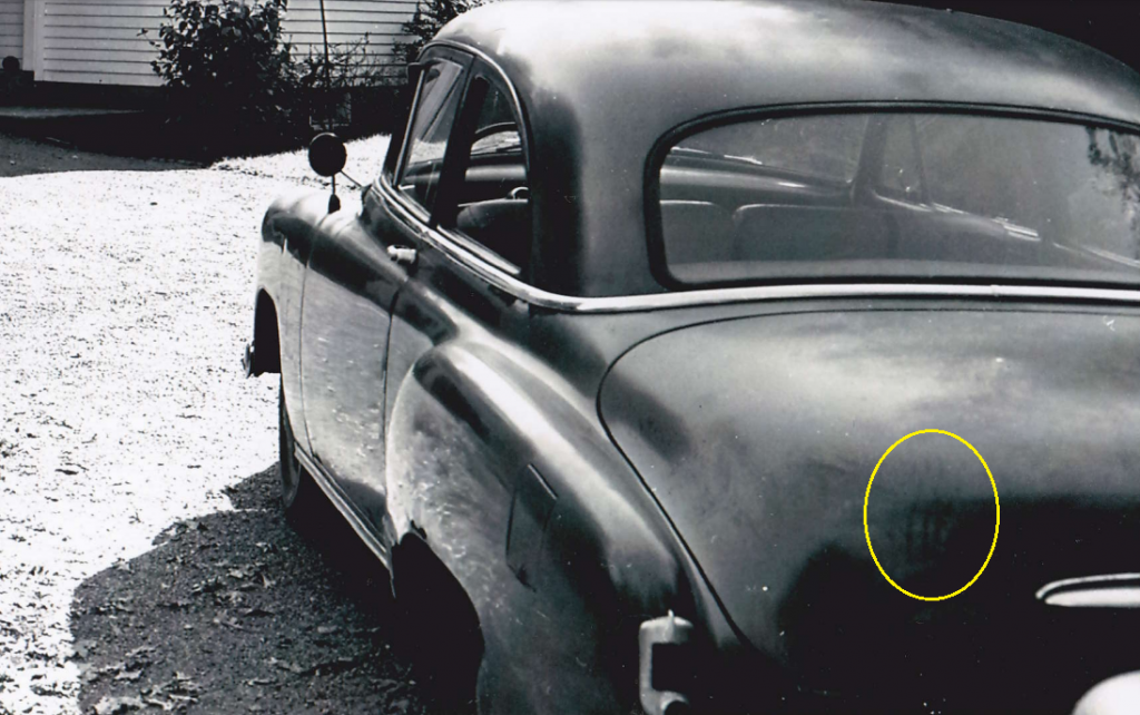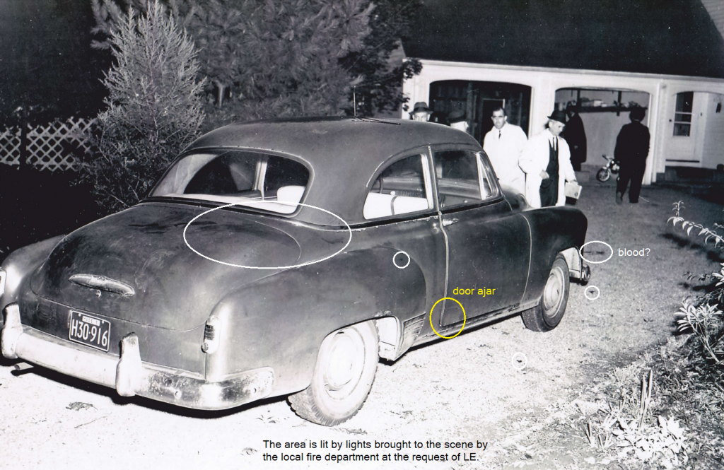 Case records indicate LE checked the registration of the vehicle parked in the R driveway to verify it was registered to the Rs... but no where do records indicate that LE checked the trunk. Reviewing a photo of the vehicle we can see the passenger door was not in a fully closed position at the time the photo was taken.