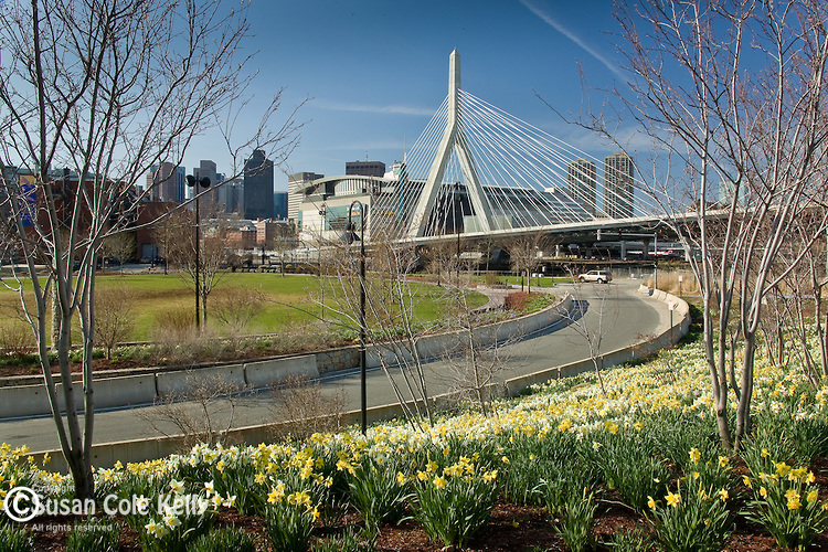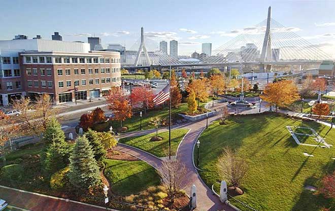 Perspective of other side of park and also walkway areas around Garden and under Zakim Bridge