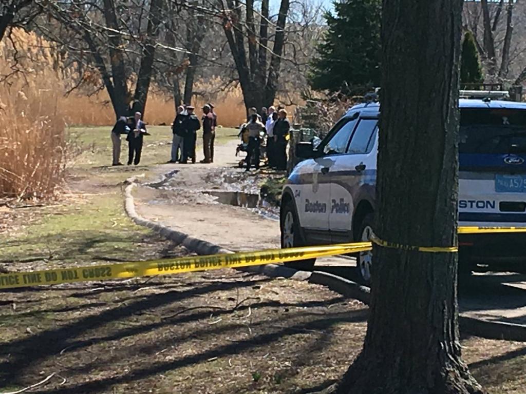 .@bostonpolice appear to be searching Back Bay Fens right now. Boat, ambulance, & squad cars on the scene