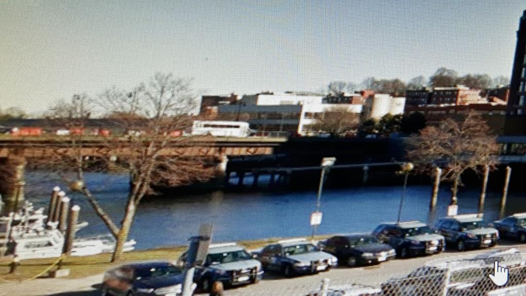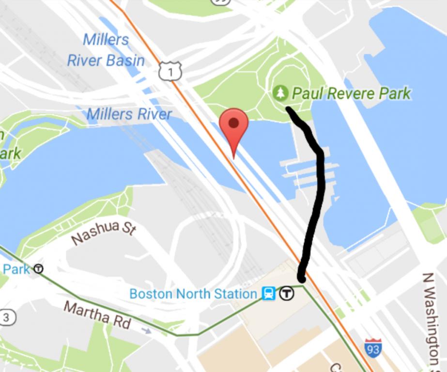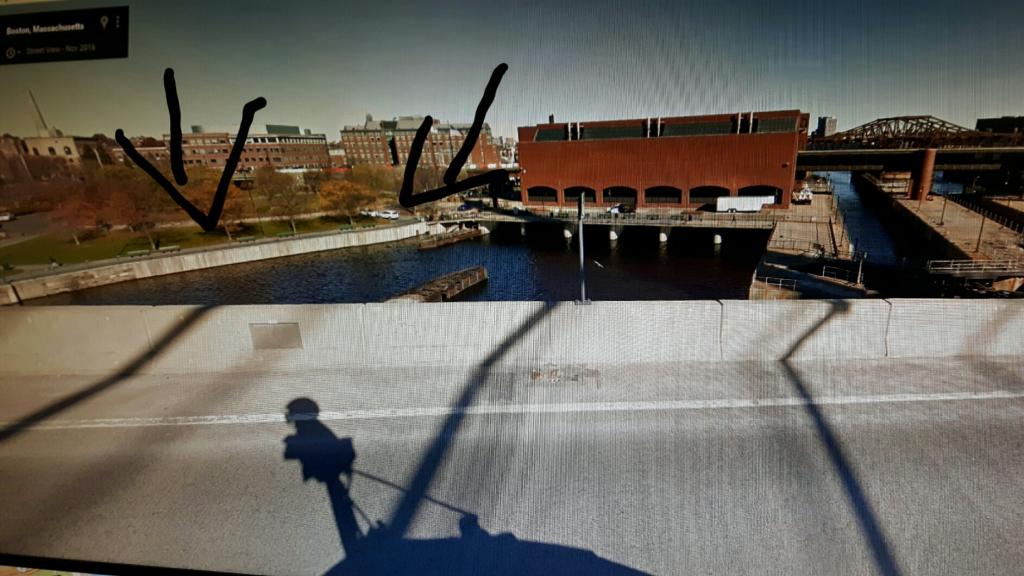 I then did street view from the zakim bridge. You can see an arrow pointing to the park to see why this walkway makes the most sense as he can enter it from the park right there.