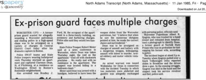 The defendant (Clarence Dean) was convicted of kidnapping and assault and battery by means of a dangerous weapon based on events which took place in the course of a tumultuous day-and-a-half long drive with his estranged wife through central and western Massachusetts, southern Vermont, and northern Connecticut in December, 1981.