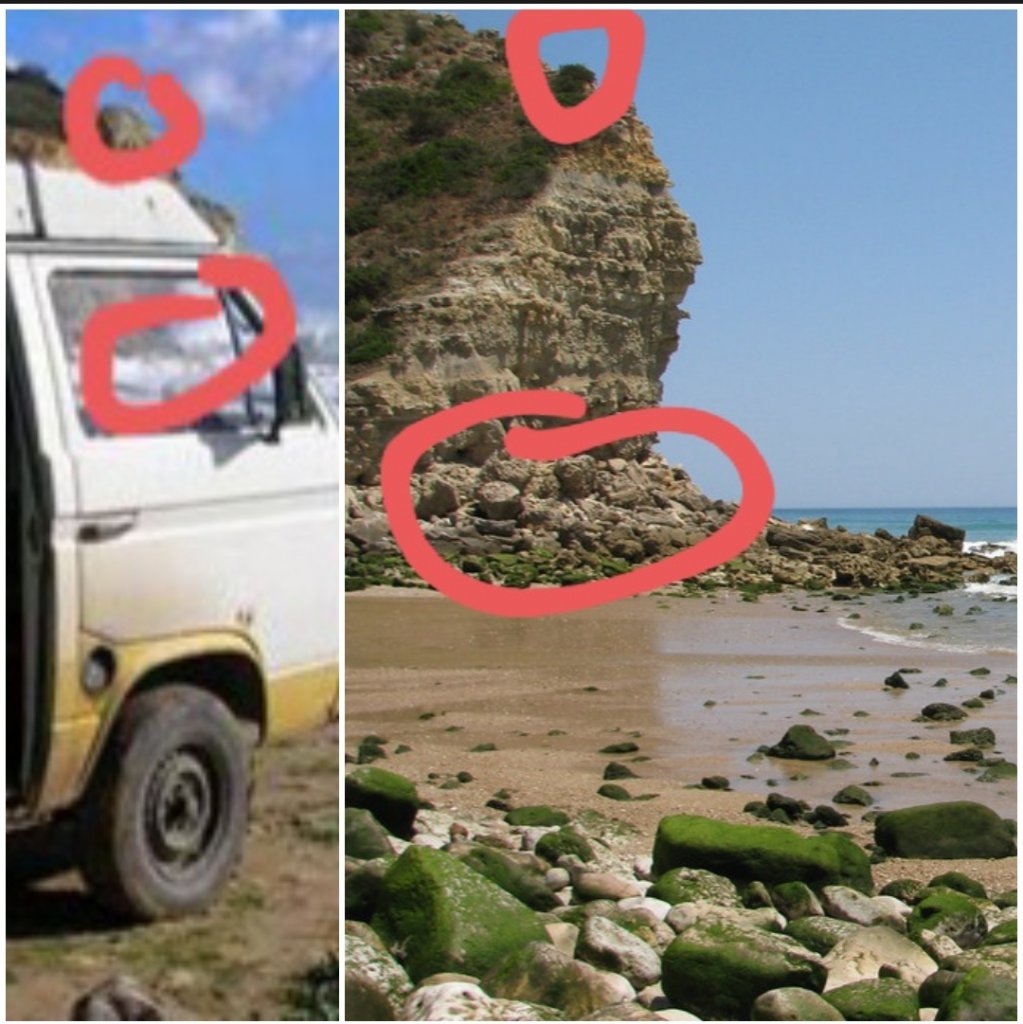 Sure. It's in previous threads but I can't located posts now. Many pictures were checked against van and an exact location could be found. Water level depends on high and low tide and also there's a decline full of sand that can't be seen due to projection angle.