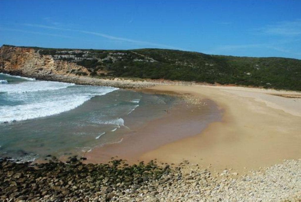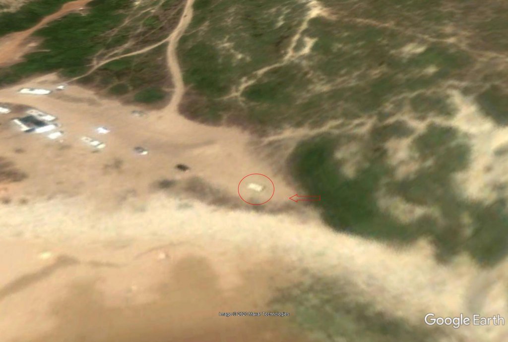 And look at the wet area... I am studying more pictures of the Praia do Barranco and am convinced it is the one pictured in the Westfalia photo. I found more images where campervans were parked beyond the parking lot much closer to the water plus those waves pictured in the Westfalia photo are fierce and it seems the photo might have been taken in the winter when the water goes higher up the beach.