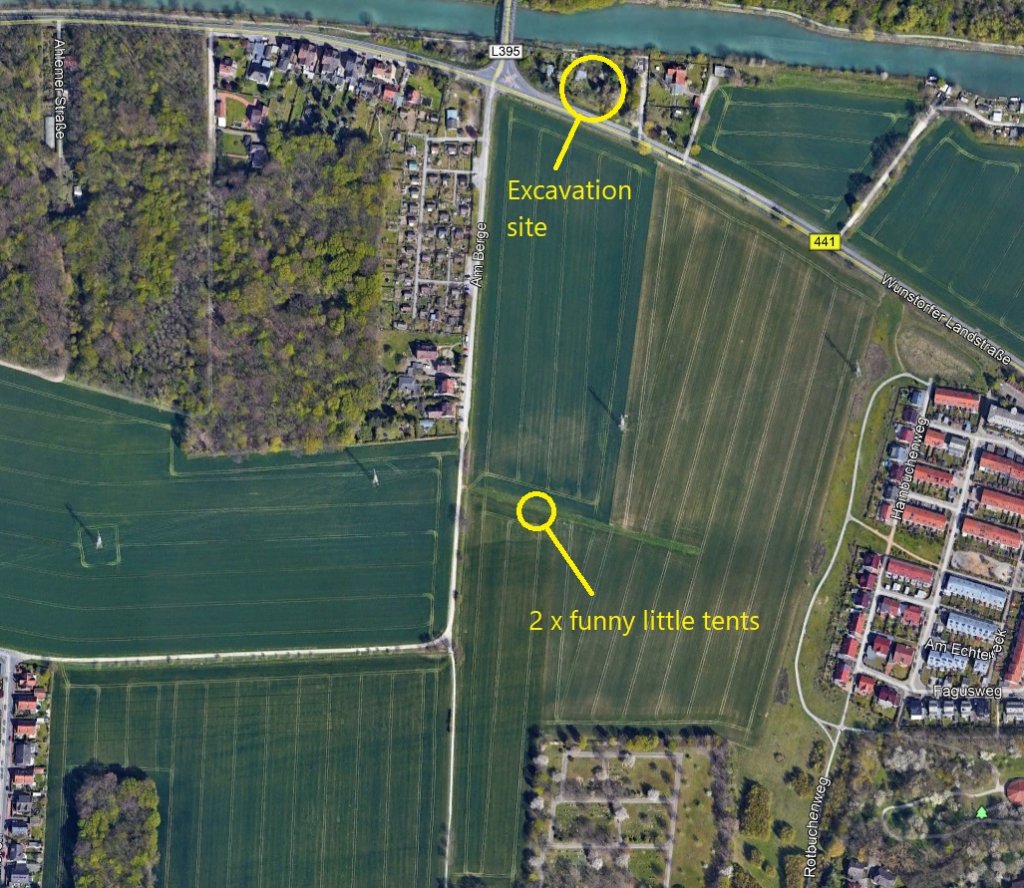 Yes, could be toilets, or could be observation tents, but then why would they pitch them 400 meters away? The police van looks like it has some kind of scanning equipment on the roof:
