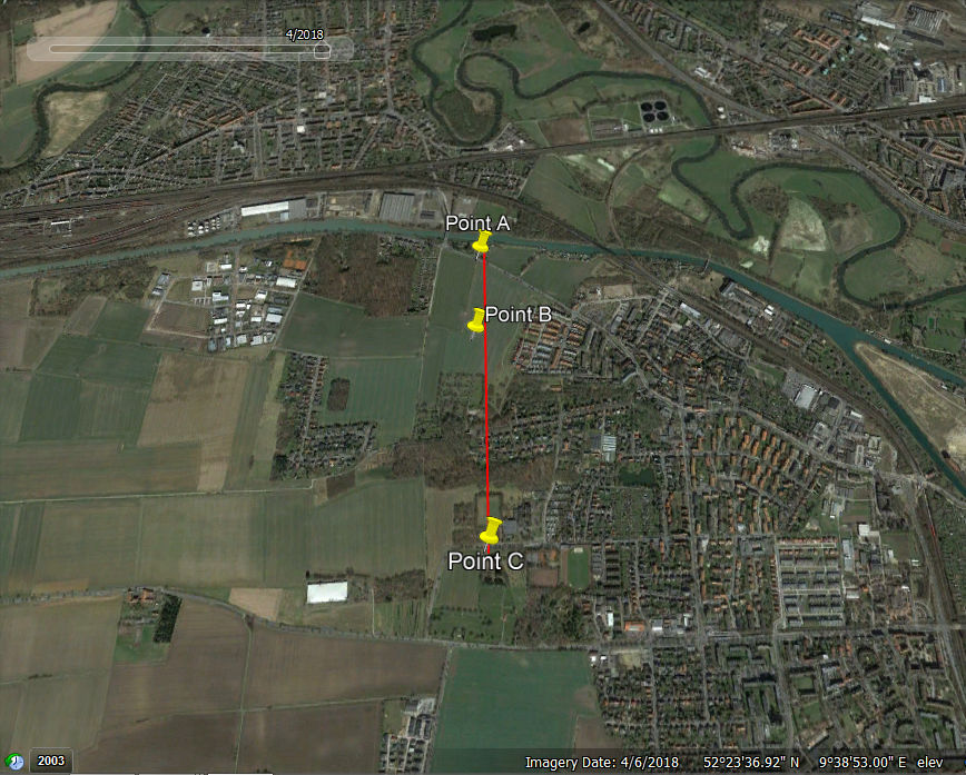 I extended the line to the river, there is also a stone slab similar to Point C.